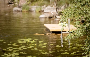 Sauna sijaitsee ylävirran puolella Karitsapolun päässä rannassa.