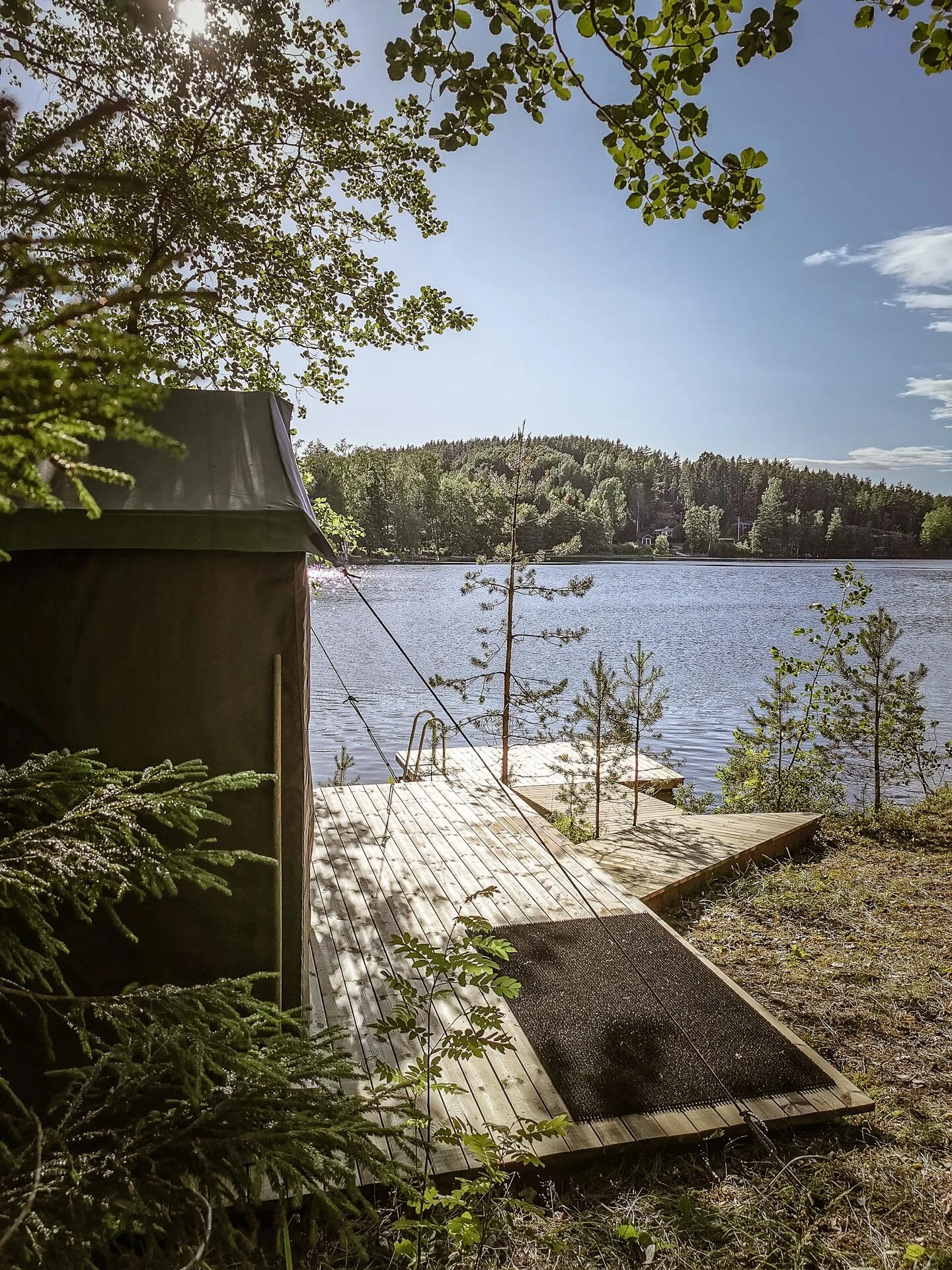 Verlan Metsäsauna on puulämmitteinen saunaelämys. Metsäsauna on tilava Savotan telttasauna, joka on pystytetty ison puuterassin päälle. Saunan terassilta lähtee silta laiturille, josta on helppo pulahtaa kirkkaan puhtaaseen veteen.